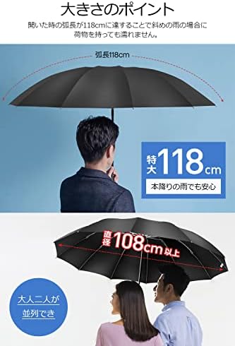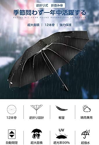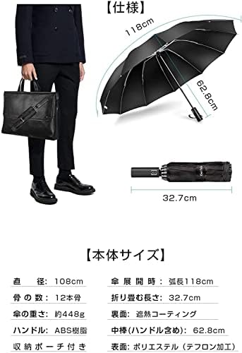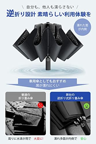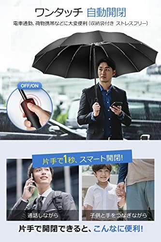 【超大サイズ・12本骨】 折りたたみ傘 ワンタッチ自動開閉 メンズ傘 大きい 逆折り式 折り畳み傘 風に強い テフロン加工 耐風撥水 丈夫耐久 折りたたみ日傘 遮光遮熱 UVカット 晴雨兼用傘 梅雨対策 台風対応 豪雨対応 メンズ レディース 収納ポーチ付き (ブラック) | 折りたたみ傘 通販